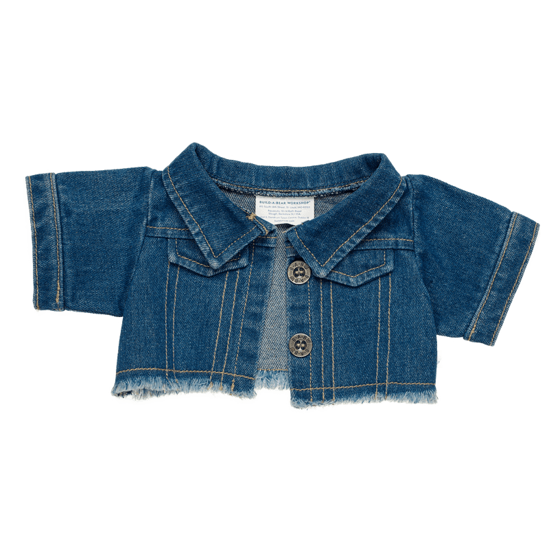 Add this frayed denim jacket to your bear’s outfit for a cool and edgy fashion statement.